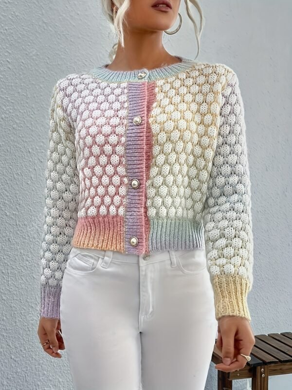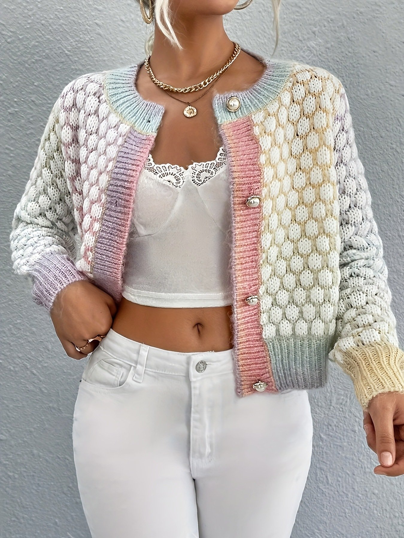 Women’s Gradient Color Round Neck Sweater Cardigan